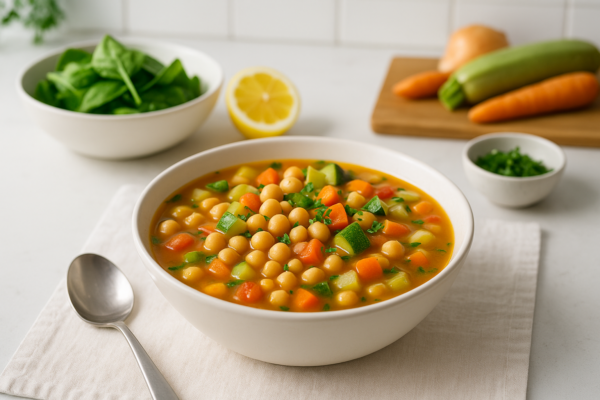 Envie d’un bol de réconfort riche en saveurs et en nutriments ? Cette soupe pois chiches non mixée allie la douceur des légumes de saison à la gourmandise des pois chiches. Léger mais rassasiant, ce plat végétal complet soutient votre équilibre en phase 3 tout en titillant vos papilles.